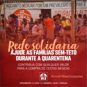 O Movimento de Luta nos Bairros, Vilas e Favelas (MLB) no Rio de Janeiro começou a organizar uma campanha de arrecadação financeira junto a sindicatos, entidades sociais e pessoas comprometidas com a luta do povo pobre para a compra de cestas básicas para as famílias sem-teto organizadas no movimento.